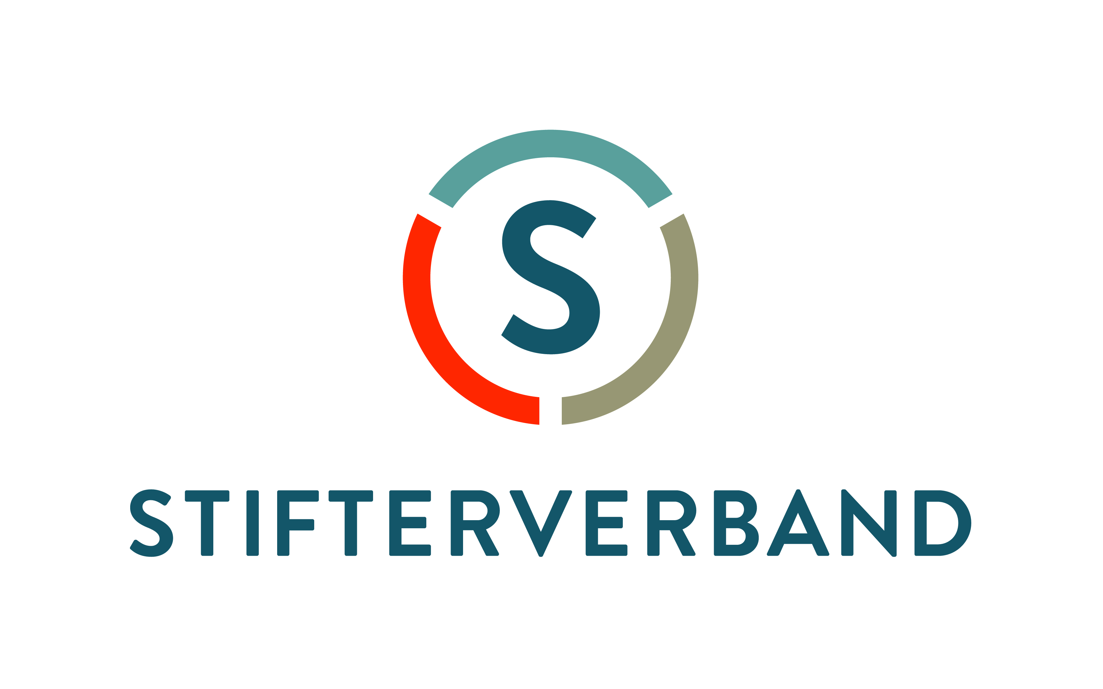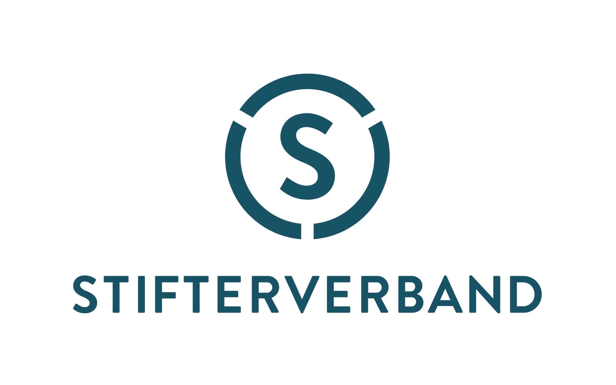 Das Logo des Stifterverbandes setzt sich aus einer Bildmarke und einer Wortmarke zusammen. Die Bildmarke besteht aus einem Kreis, der sich aus drei verschiedenfarbigen Elementen zusammensetzt, die den Buchstaben S umrahmen. Die Wortmarke ist in einer modernen serifenlosen Schrift gesetzt.