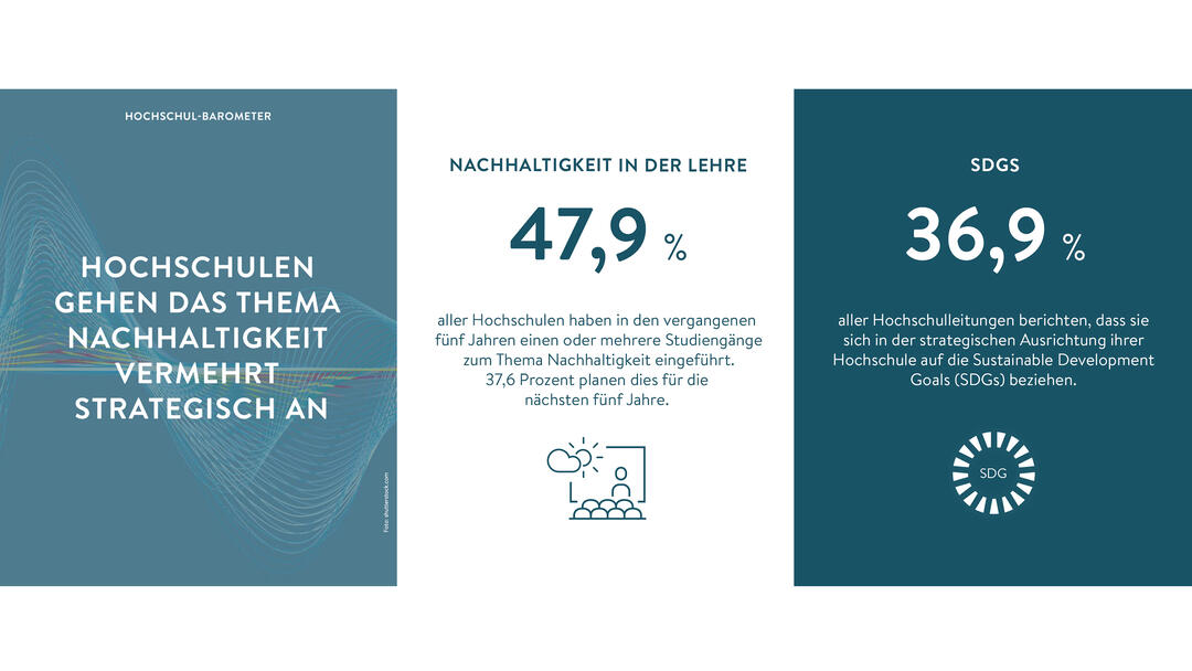Der Stifterverband hat in seinem aktuellen Hochschul-Barometer untersucht, wie nachhaltig deutsche Hochschulen allgemein agieren – wie sehr sie ihre Strategie im Sinne der 2015 formulierten 17 Nachhaltigkeitsziele der Vereinten Nationen ausrichten. Dabei kam heraus, dass 25 Prozent bereits über eine Nachhaltigkeitsstrategie verfügen, weitere rund 64 Prozent eine solche Strategie planen. Ein guter Trend, auch wenn noch Luft nach oben ist. Der Stifterverband berät und unterstützt Hochschulen deshalb auf dem Weg dorthin – etwa in Form von Workshops.